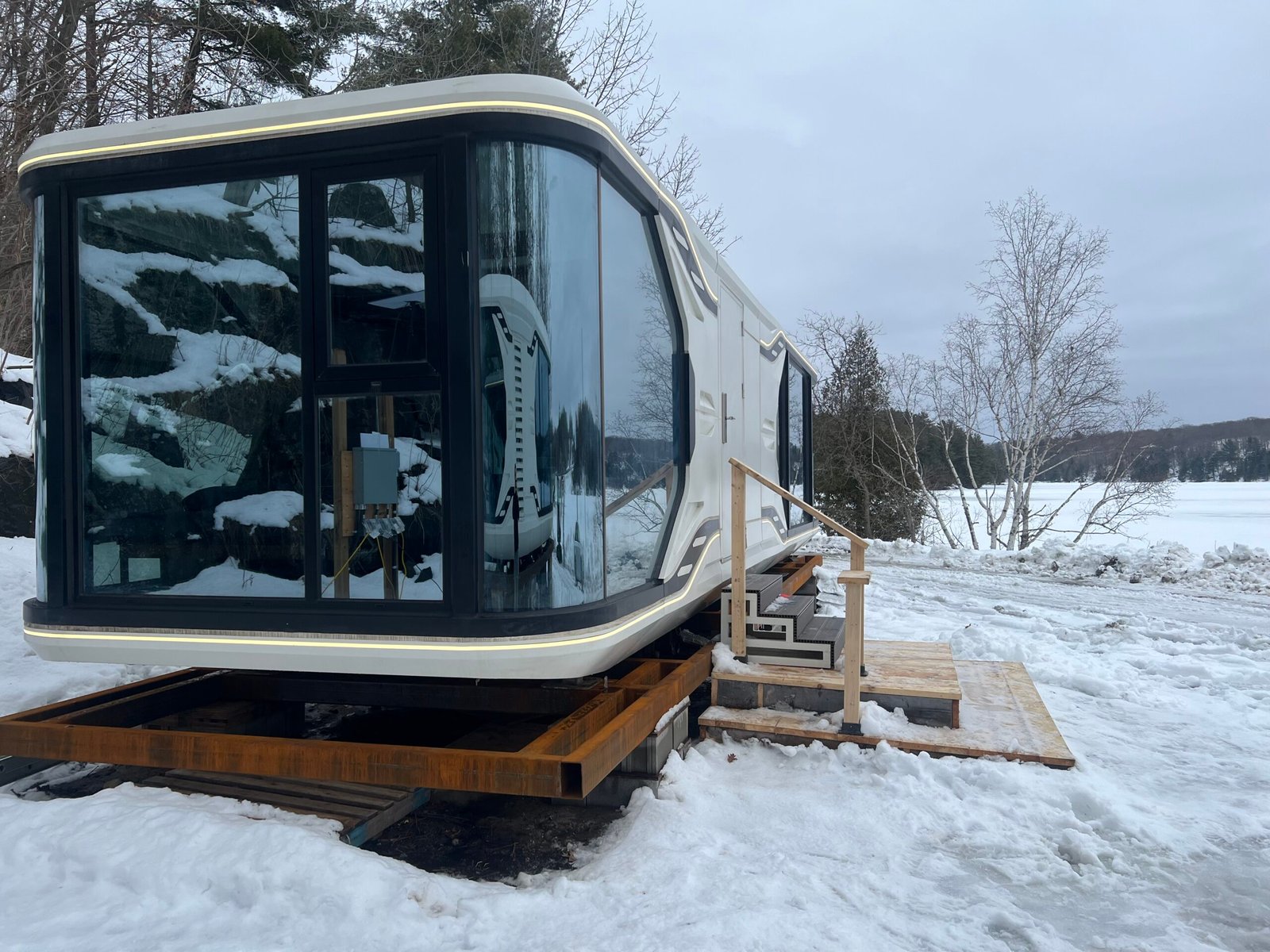 Escape to a truly unique lakeside retreat in Parry Sound, Ontario. Set on the shores of Mill Lake, this space-inspired 1-bedroom unit offers a peaceful getaway with easy access to sandy beaches and stunning natural surroundings — perfect for a memorable and relaxing stay.