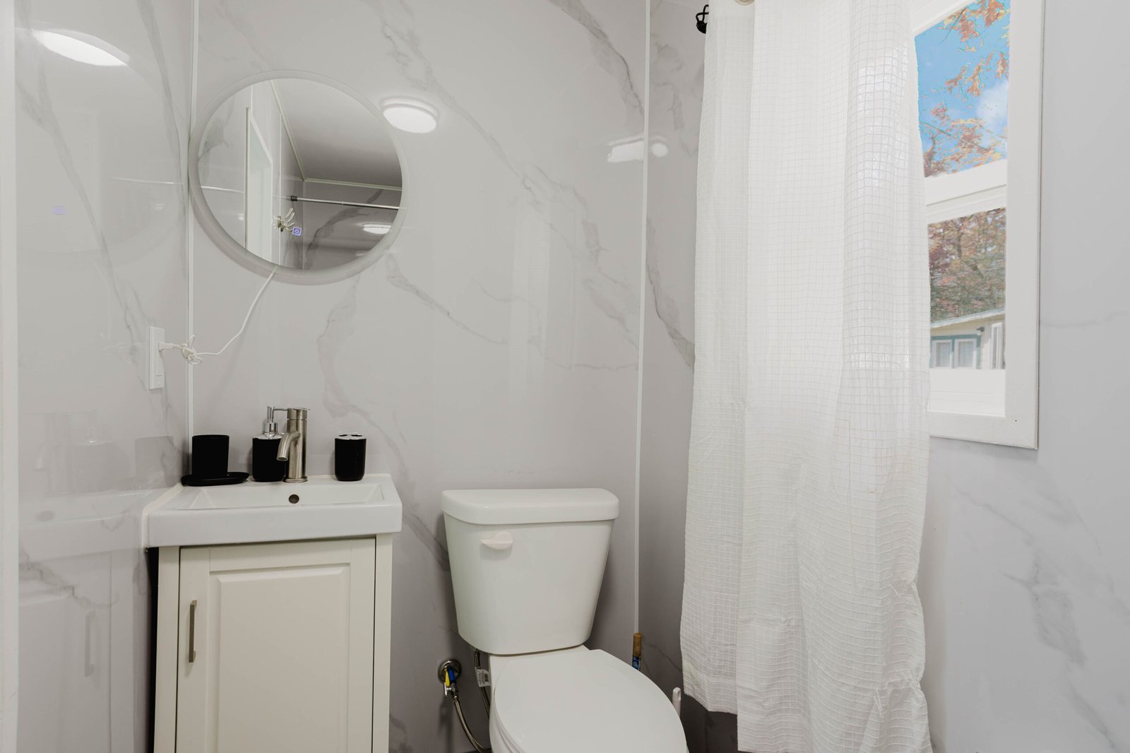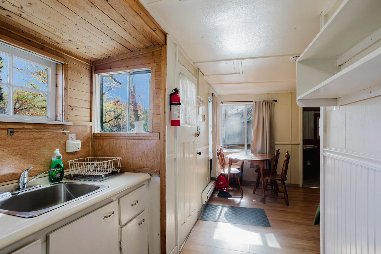 Enjoy cozy living in a 400 square feet cottage, ideal for a family of 5. Relish a partial lake view from the deck. Your snug lakeside escape awaits in this charming space!