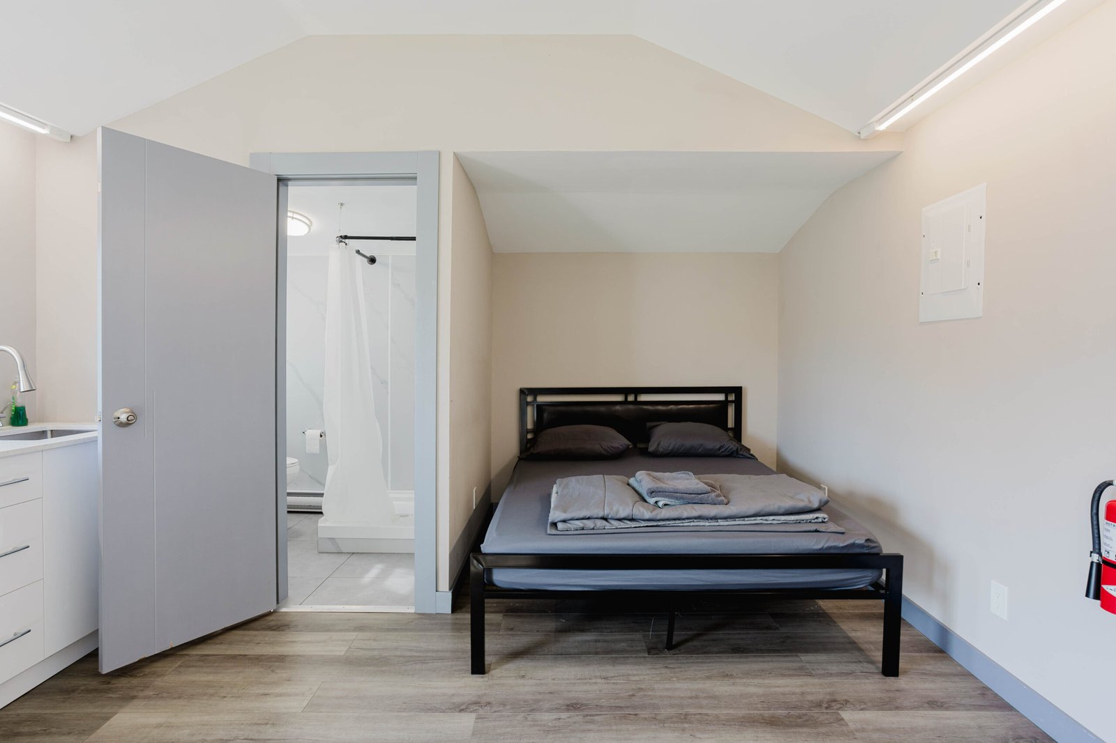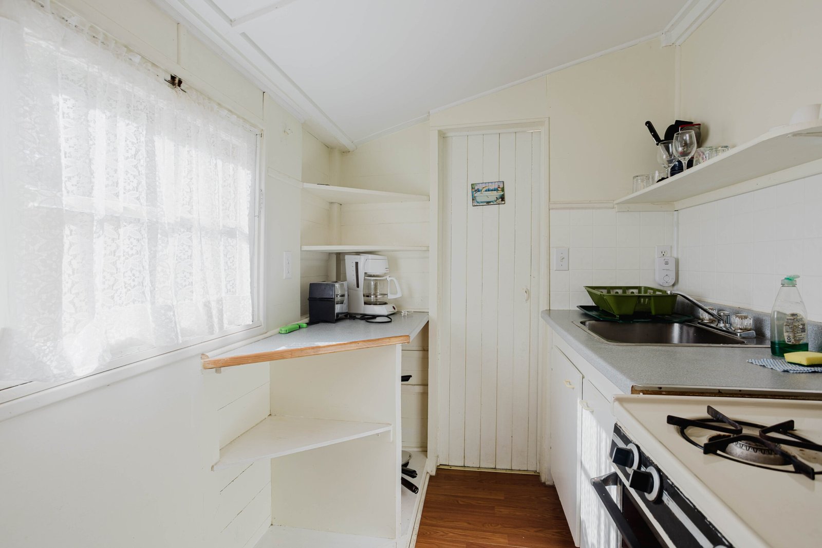 Enjoy endless lake views in a quaint studio cottage, ideal for a family with two children. With a comfy double and bunk bed, it ensures restful slumber after a day of fun. The kitchen, living area, and deck all boast stunning waterfront sights.
