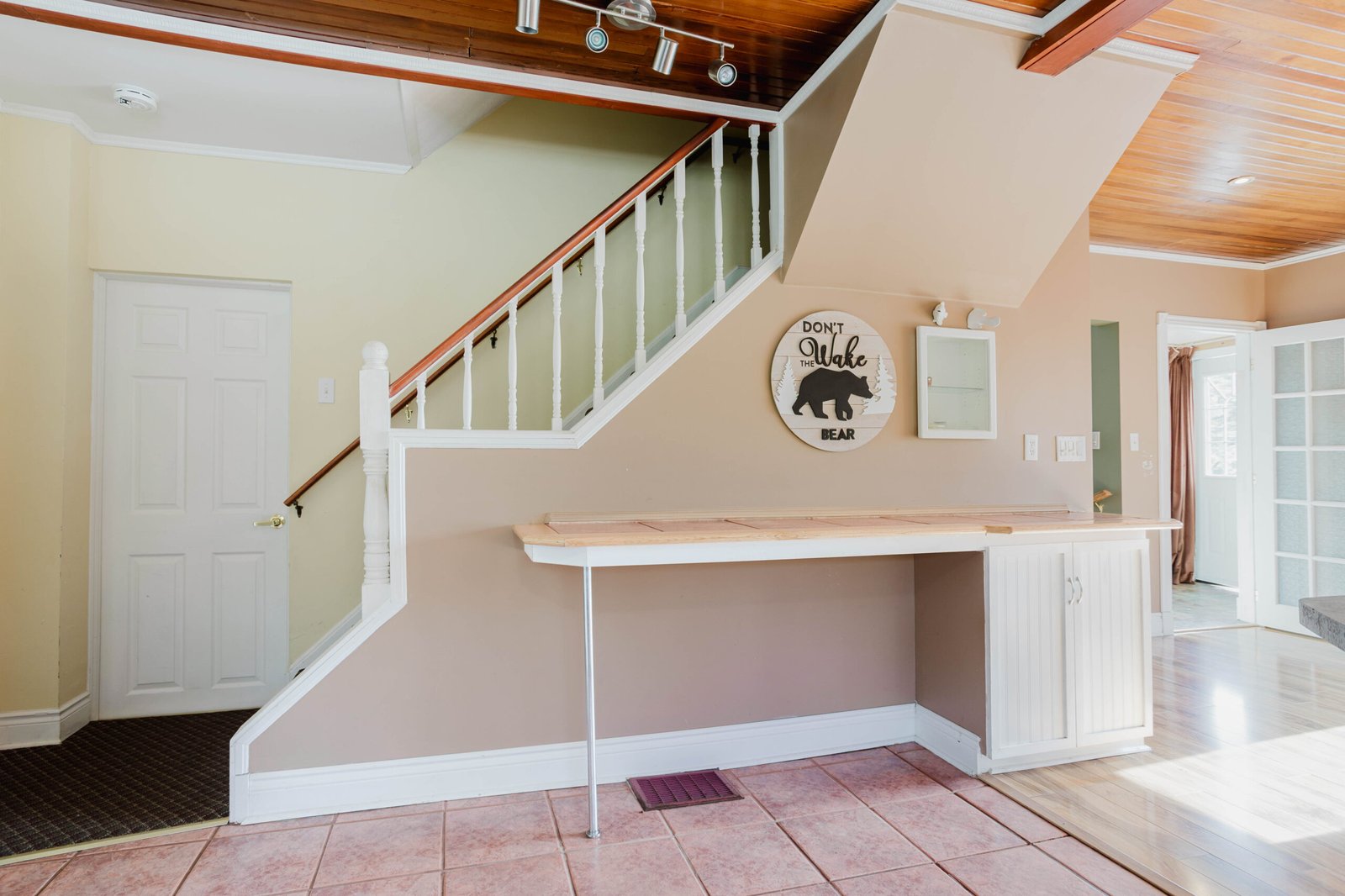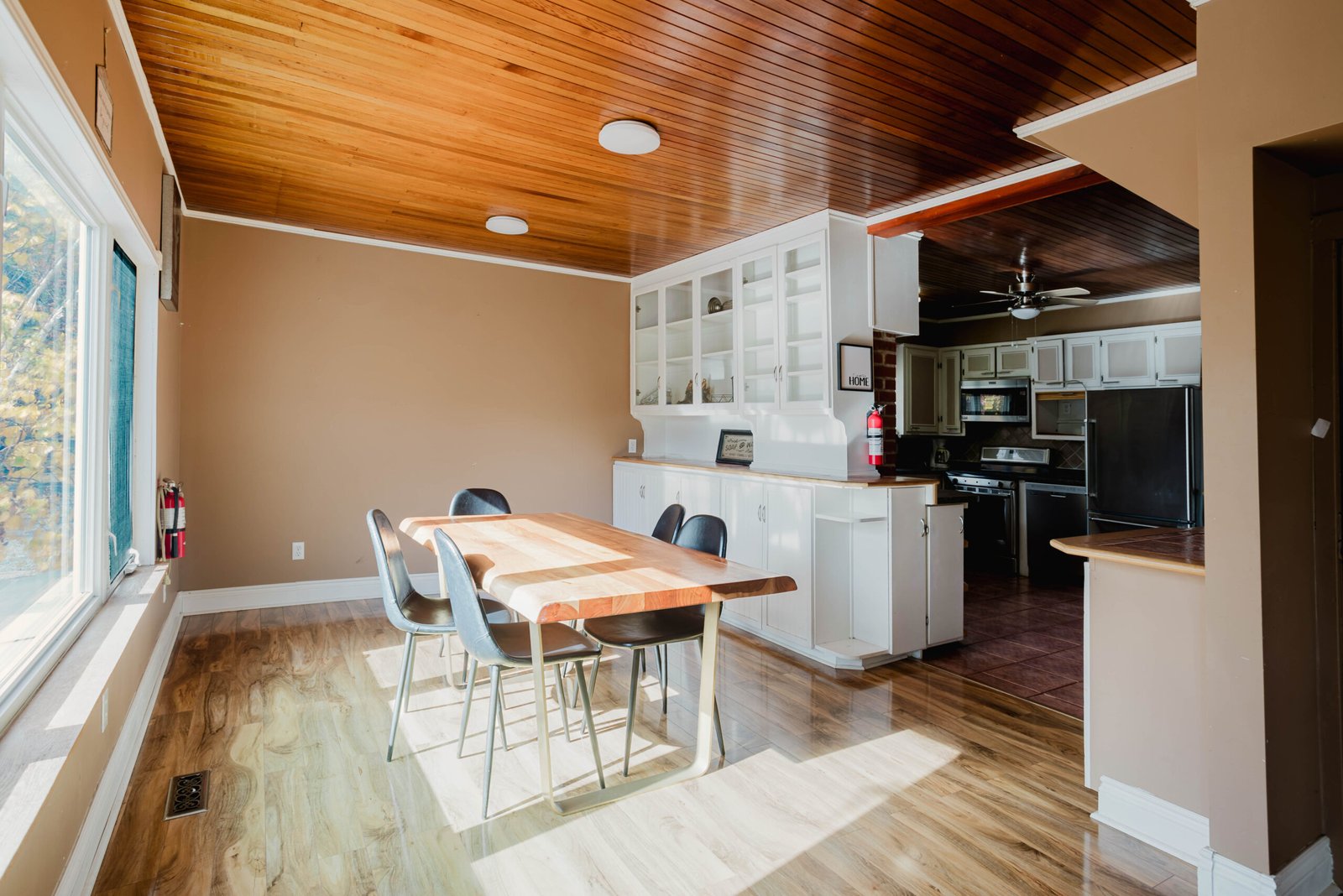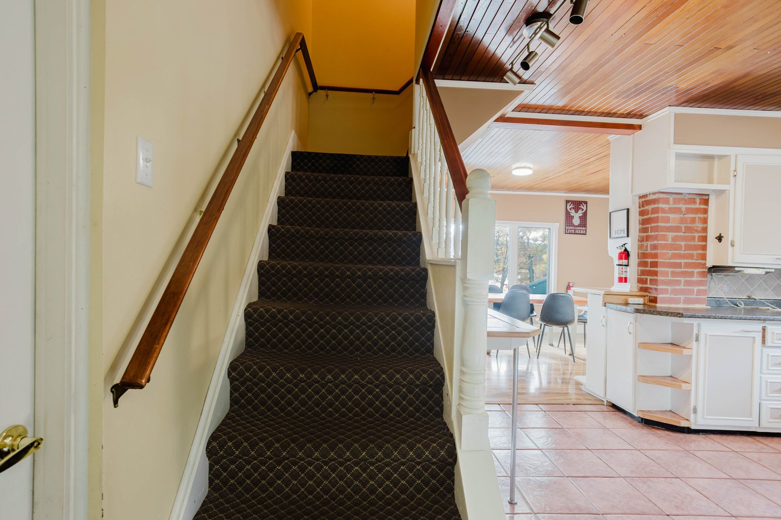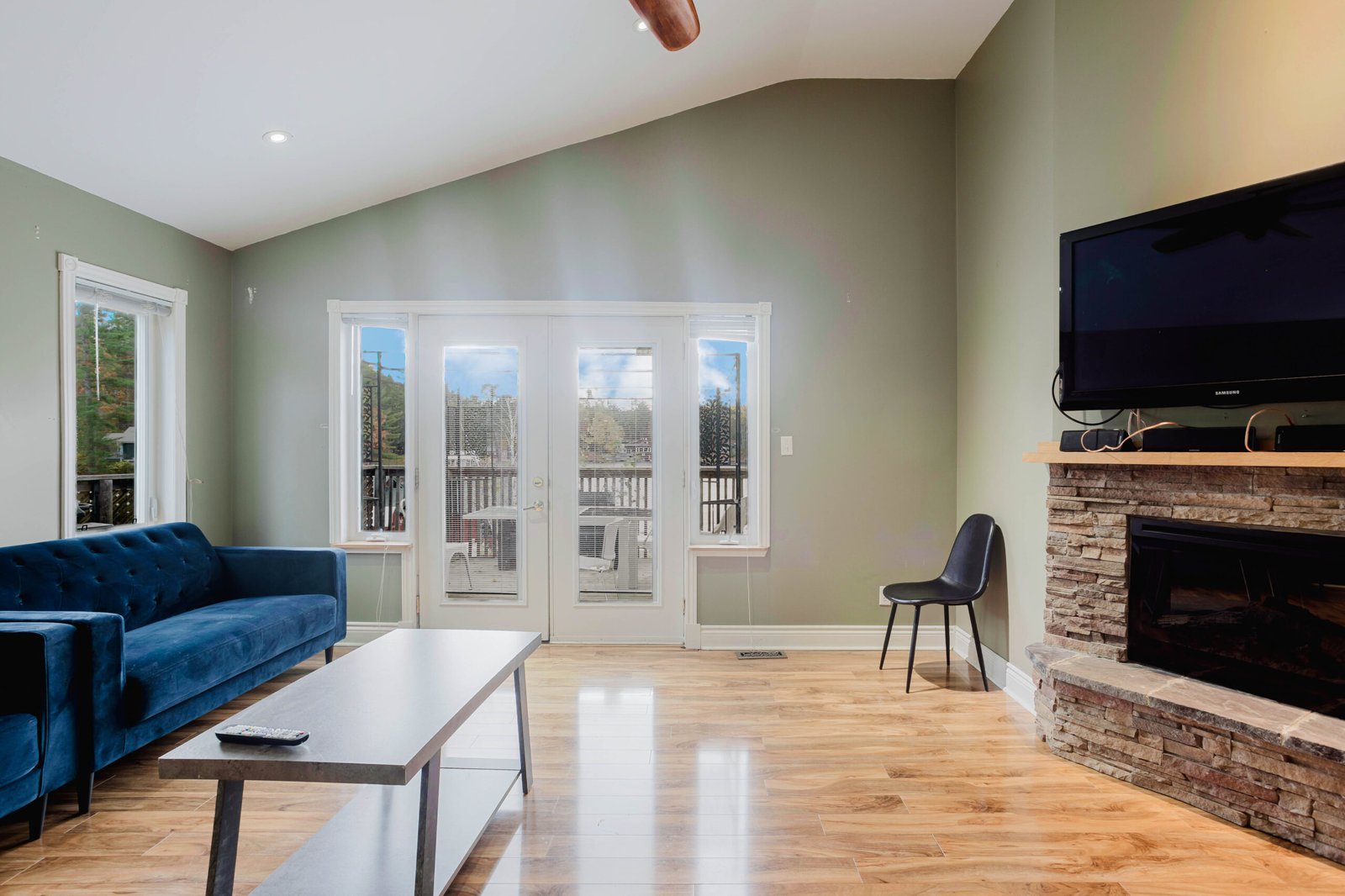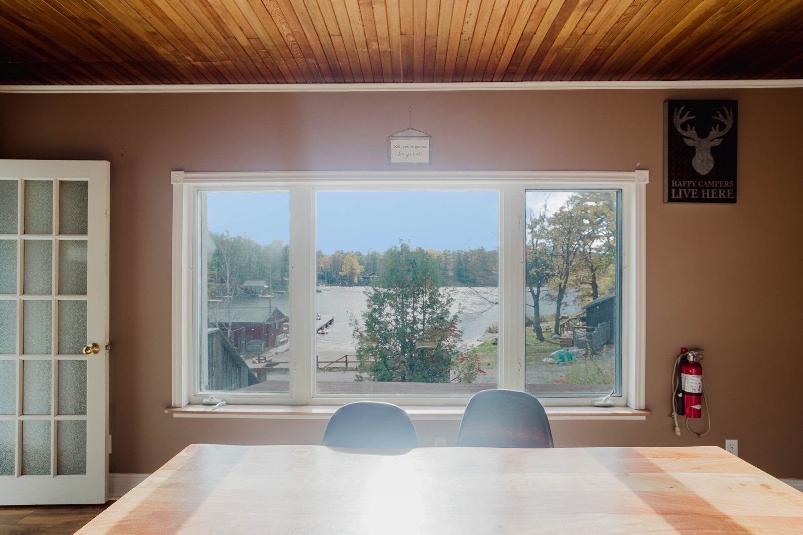 The main house offers 4 cozy bedrooms and 2 bathrooms for you to experience the ultimate comfort amid rustic charm. The spacious living area with a fireplace invites relaxation and connection. A deck overlooks breathtaking views of the beach and lake. This cottage is equipped with a heating system.