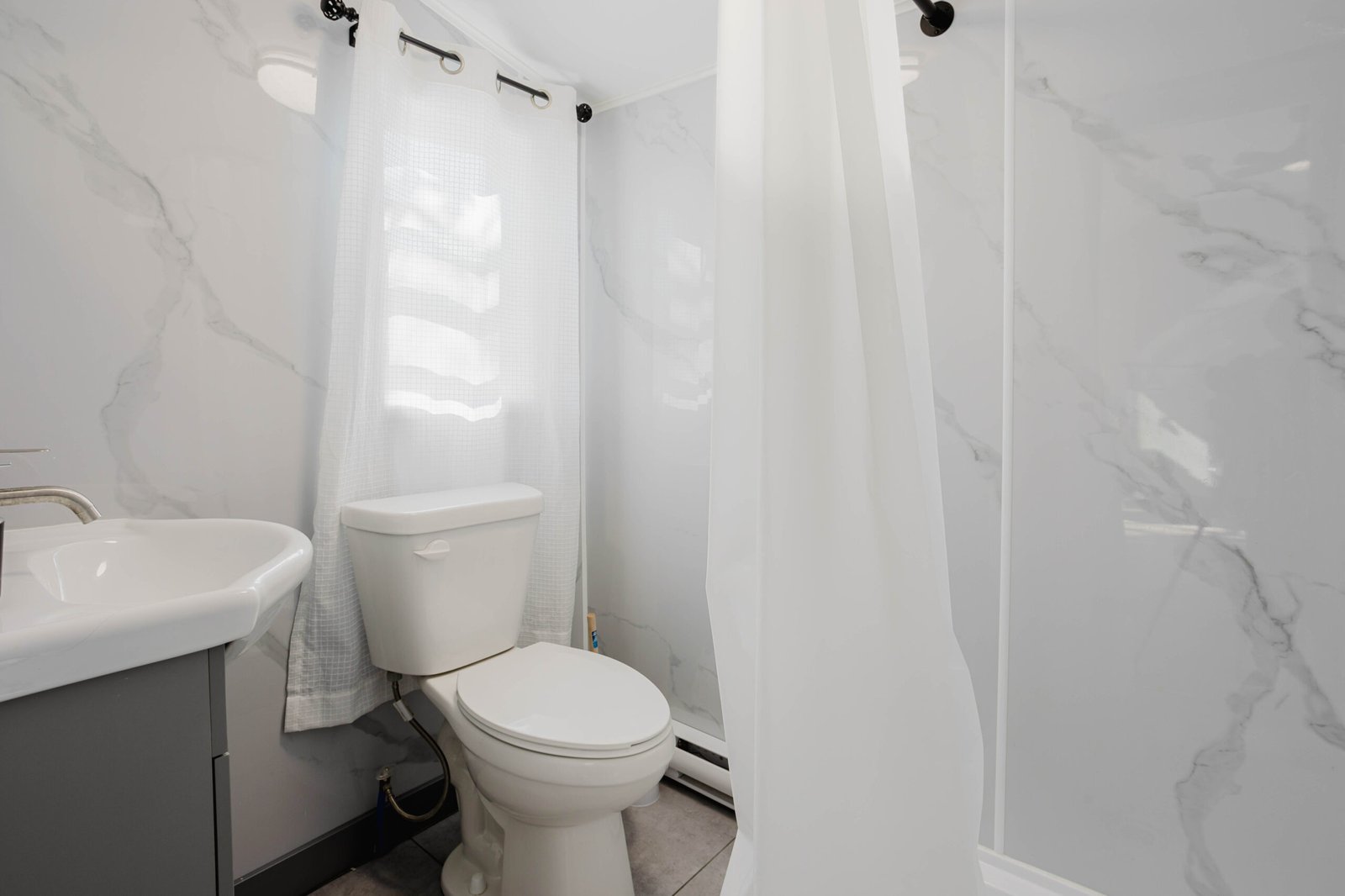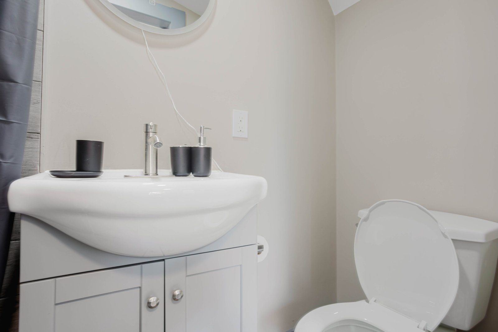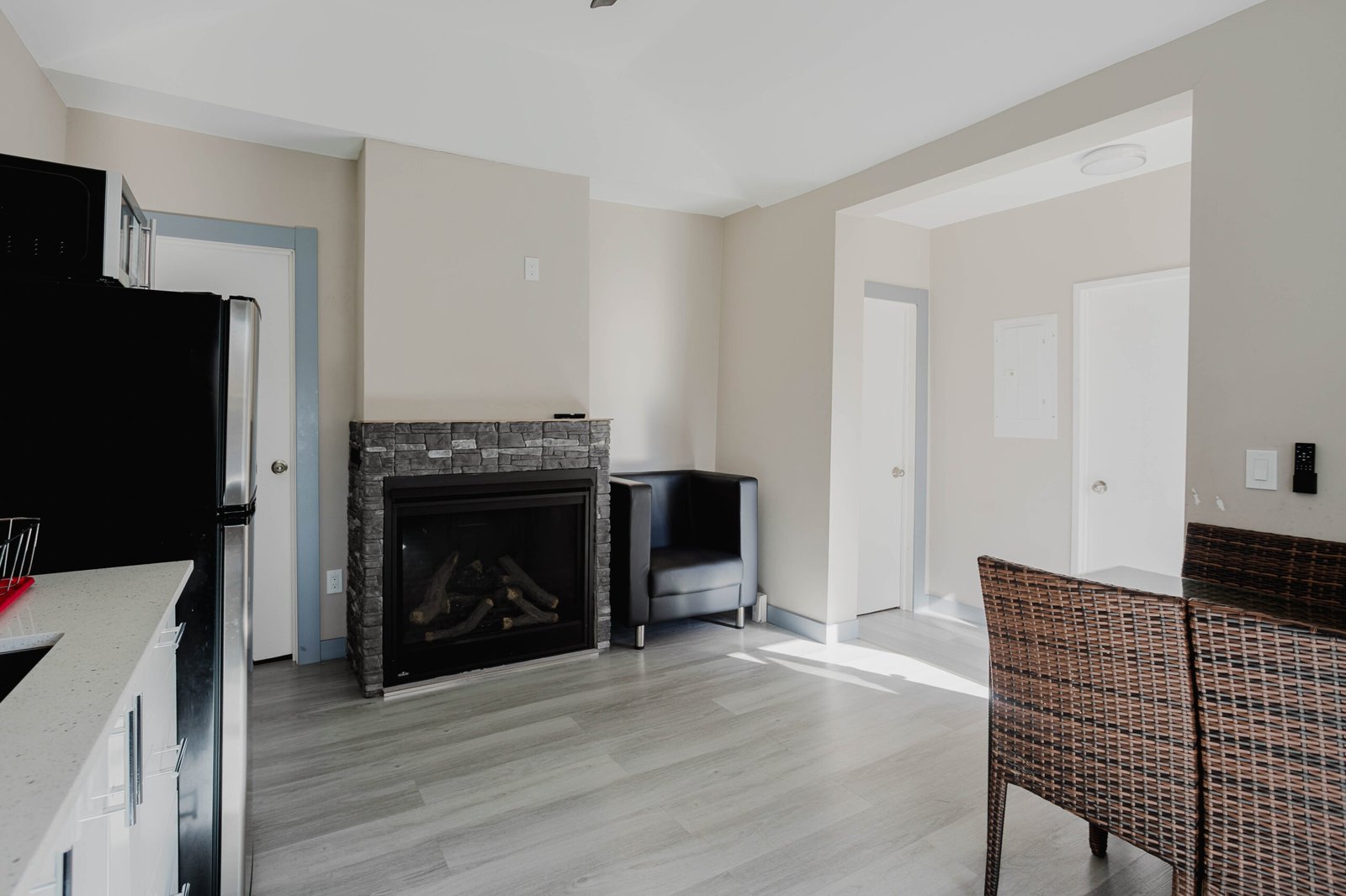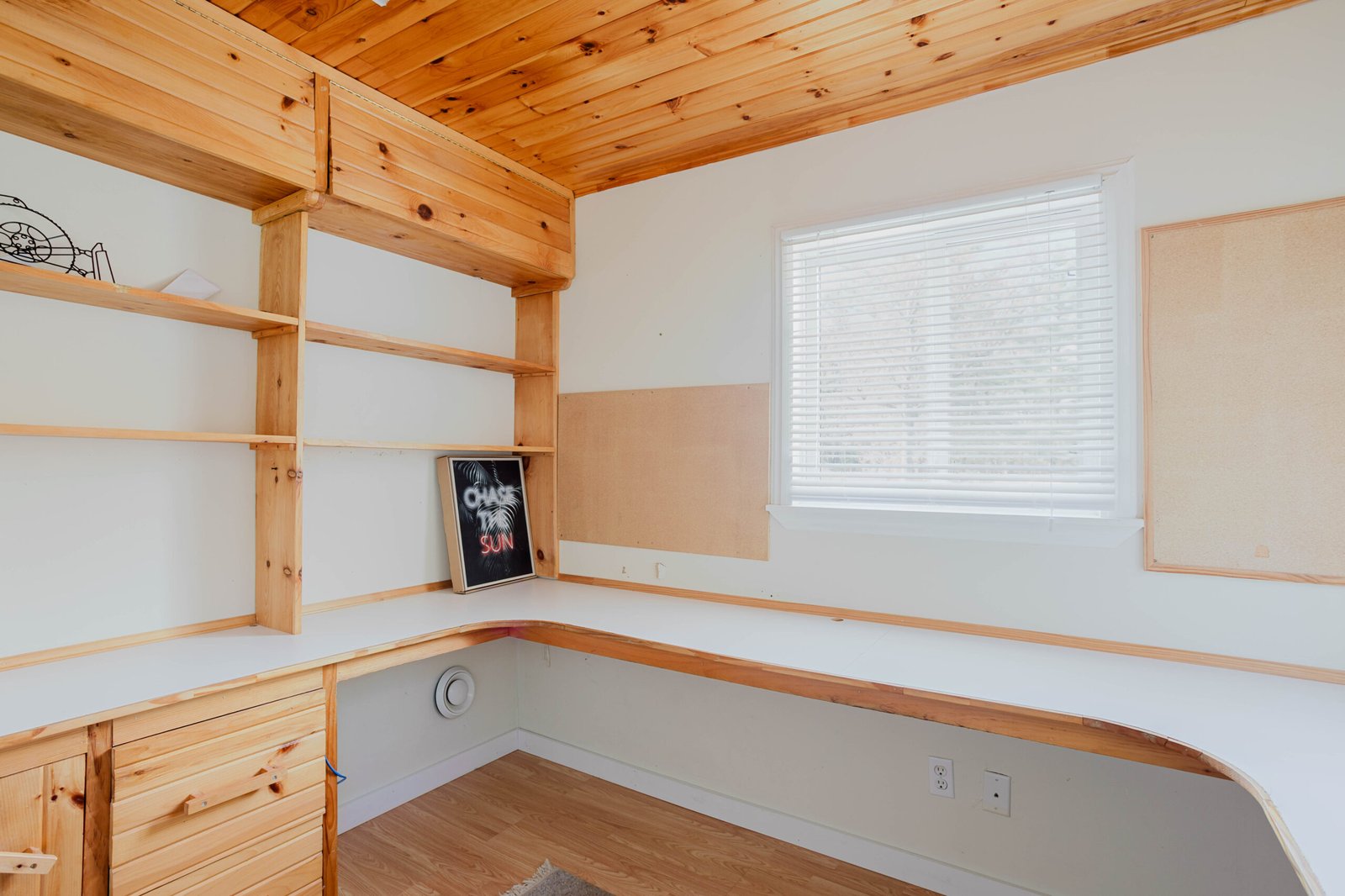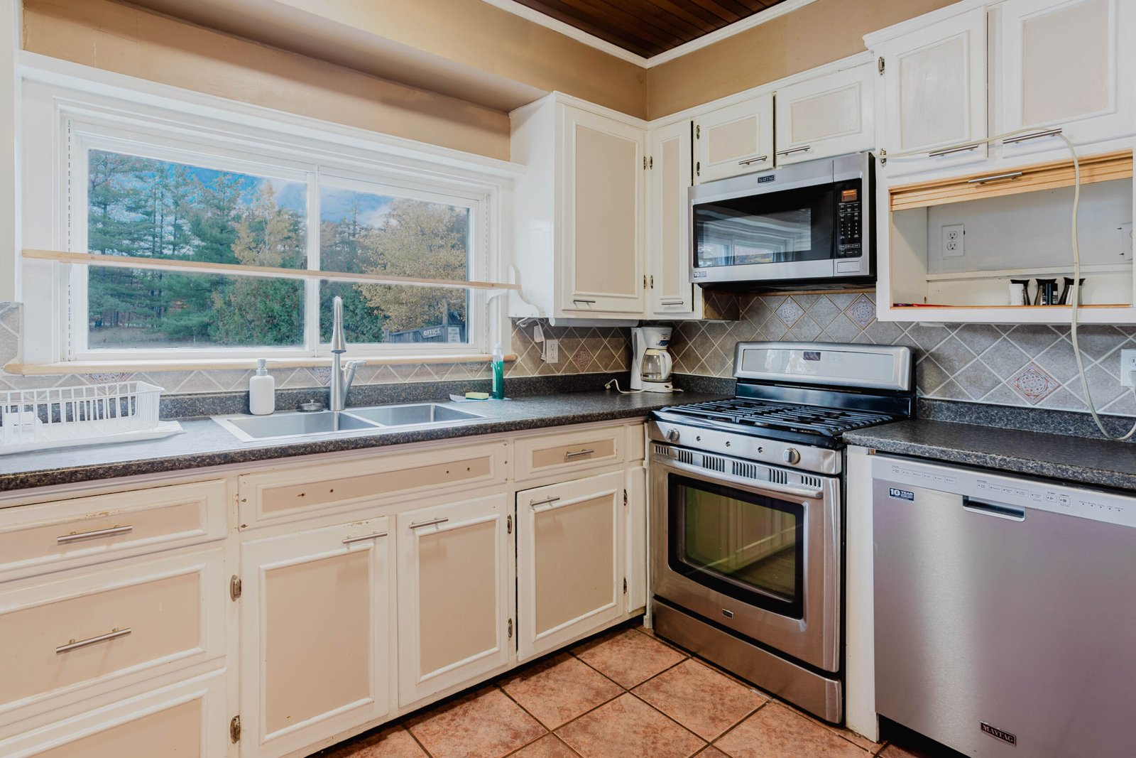 The main house offers 4 cozy bedrooms and 2 bathrooms for you to experience the ultimate comfort amid rustic charm. The spacious living area with a fireplace invites relaxation and connection. A deck overlooks breathtaking views of the beach and lake. This cottage is equipped with a heating system.