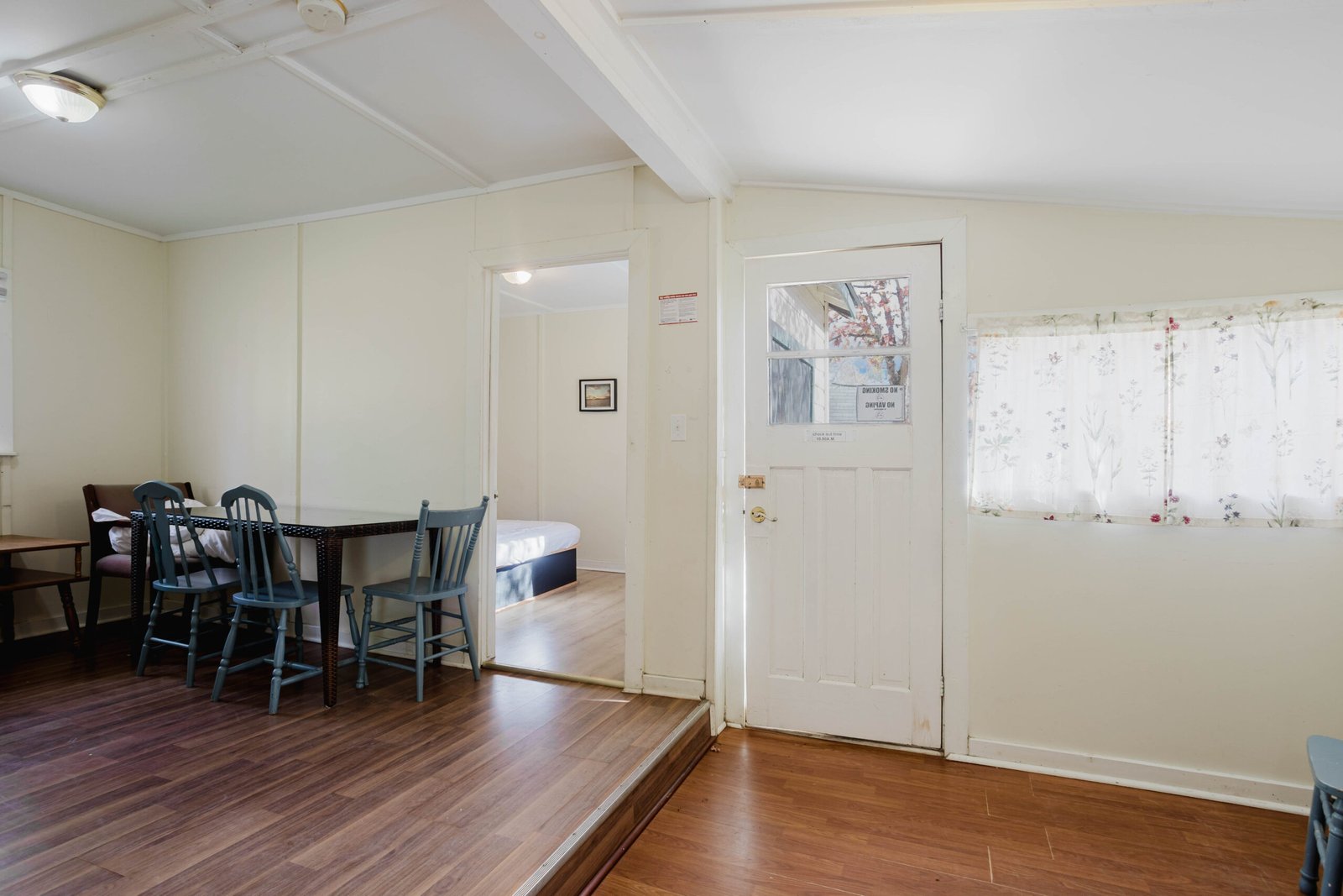 Bask in tranquil lake views from the dining area of this charming 420 square feet cottage. Two cozy bedrooms offer a peaceful retreat. Enjoy meals against a backdrop of serene water vistas.