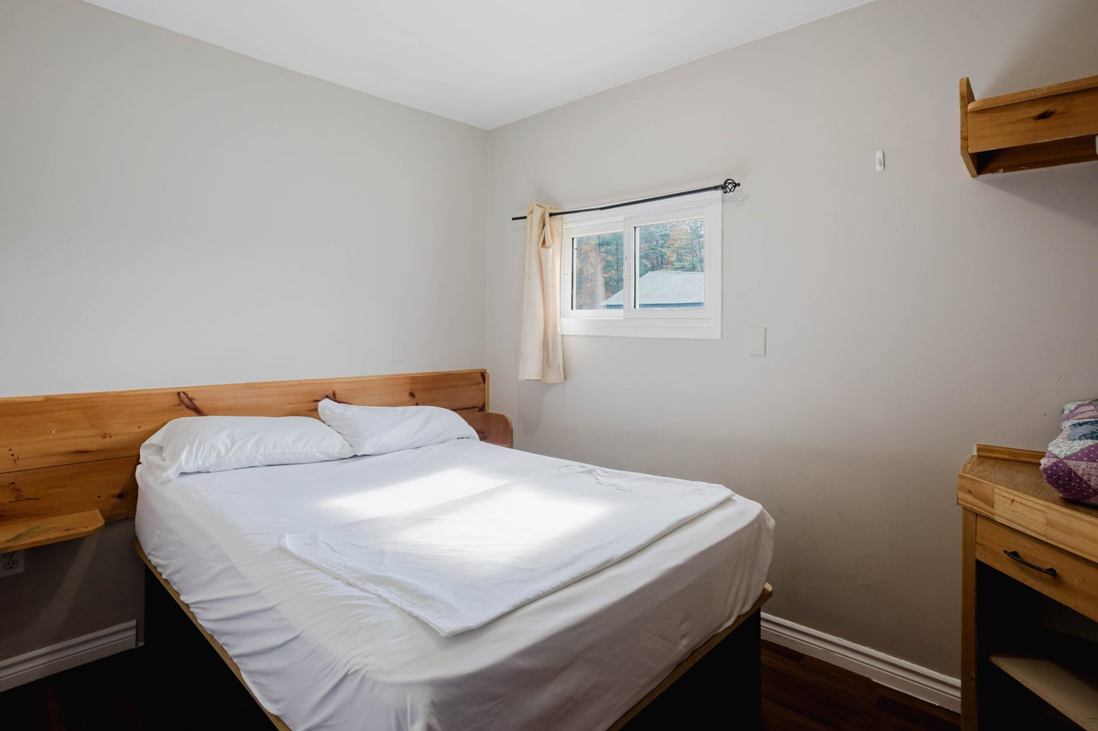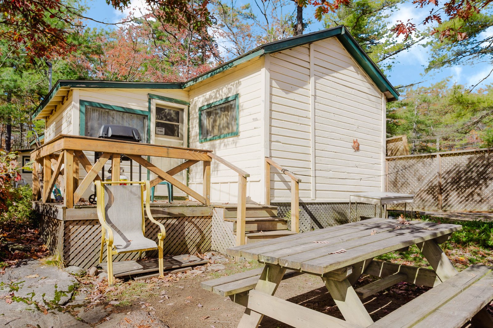 Discover comfort in a 400 square feet cottage for four. Featuring 2 bedrooms, a kitchen, and a bathroom, with a partial lake view from the deck. Embark on a delightful and compact lakeside retreat!